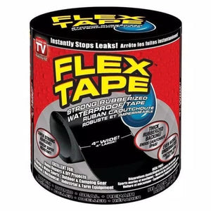 FLEX TAPE is a super strong, rubberized, waterproof tape that can patch, bond, seal and repair virtually everything! FLEX TAPE is specially formulated with a thick, flexible, rubberized backing that conforms to any shape or object! FLEX TAPE can be applied hot or cold, wet or dry…..even underwater! FLEX TAPE instantly seals out water, air and moisture to create a super strong, flexible, watertight barrier! It’s extra wide size allows you to quickly cover large cracks, gaps and holes! FLEX TAPE is UV resistant, environmentally friendly, VOC-free and has a wide temperature range so it can be used in extreme weather conditions! FLEX TAPE adhesives may resist bonding to the following surfaces: Plasticized materials, siliconized, greasy, oily, dirty or porous surfaces, waterproof or water-repellent materials and fabrics. Always test before use.